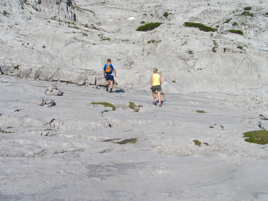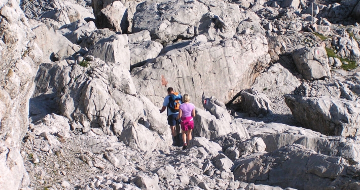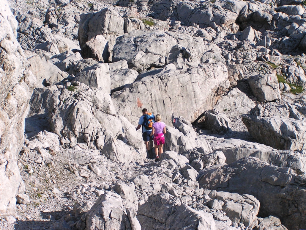 Mit dem Auto gehts in aller frühe nach Maria Alm im benachbarten Österreich. Von da geht der Weg hinauf zum auf 2177 m hoch gelegenen Riehmannhaus, das eingebettet zwischen Sommerstein und Breithorn liegt. Bis dahin geht man den gleichen Weg, den auch die Wallfahrer bei der berühmten Wallfahrt nach St. Bartholomä gehen. Bei sehr gutem Wetter und wenn man früh genug dran ist, sollte man einen der umliegenden Gipfel erklimmen. Bei dem von uns gewählten Breithorn hat man nicht nur eine herrliche Aussicht auf die Berchtesgadener Alpen, sondern auch die vielen Gipfel der Hohen Tauern, wie Großvenediger und Großglockner. Anschließend muss man wieder zum Riehmannhaus absteigen und folgt dann den Eichstätter Weg unterhalb von Breit- und Mitterhorn. Immer den Großen Hundstod vor Augen erreicht man nach etwa 4 Stunden das 2119 m hohe Ingolstädter Haus. Danach folgt man erst ein Stück dem Weg zum Kärlingerhaus ehe man nach etwa einer halben Stunde links abbiegt, hinauf zum Hundstodgatterl. Danach verlässt man langsam die Felslandschaft und immer das Watzmann-Massiv vor Augen geht es stetig bergab. Nach einem kurzen steilen Stück erreicht man Trieschübel an dem sich mehrere Wege kreuzen und man auch nach St. Bartholomä absteigen könnte. Unser Weg führt hinab ins Wimbachgries, das im Sommer fast wüstenhaft anmutet. Nachdem man die 1324 m hohe Wimbachgrieshütte erreicht hat kann man sich guten Gewissens ein „echtes“ Getränk gönnen, ehe man sich auf den immer wieder in die Länge ziehenden Marsch durchs Wimbachtal begibt. Am Ende einer solchen Tour weiß man was man gemacht hat, aber die Erinnerung an diese einzigartige Landschaft vergisst man so schnell nicht!