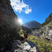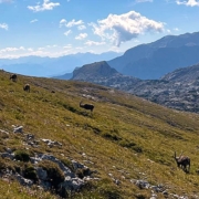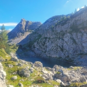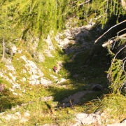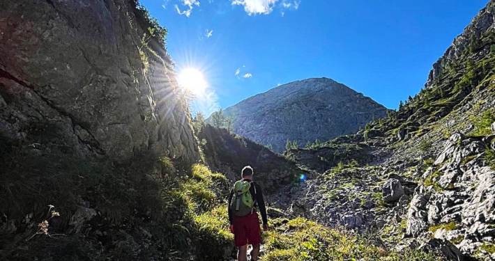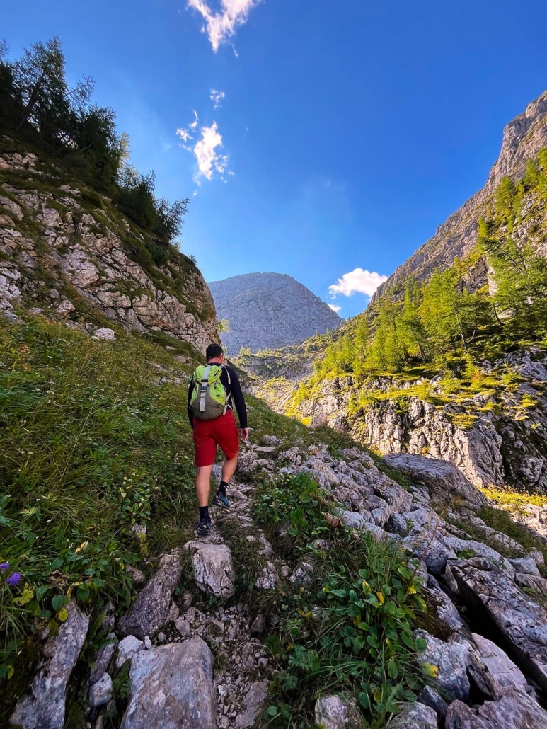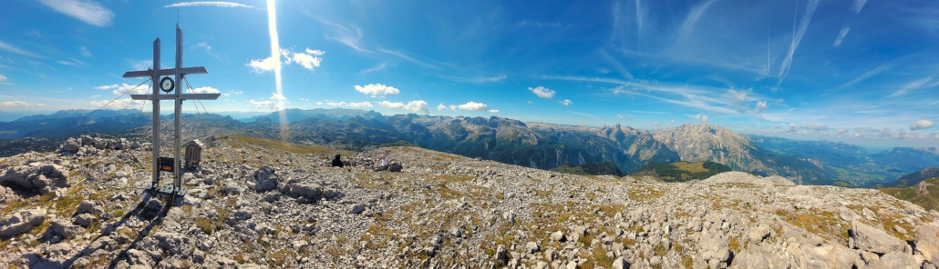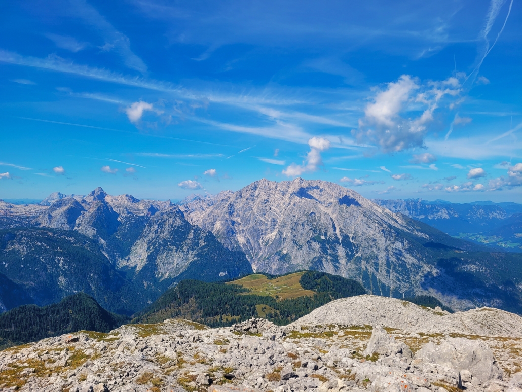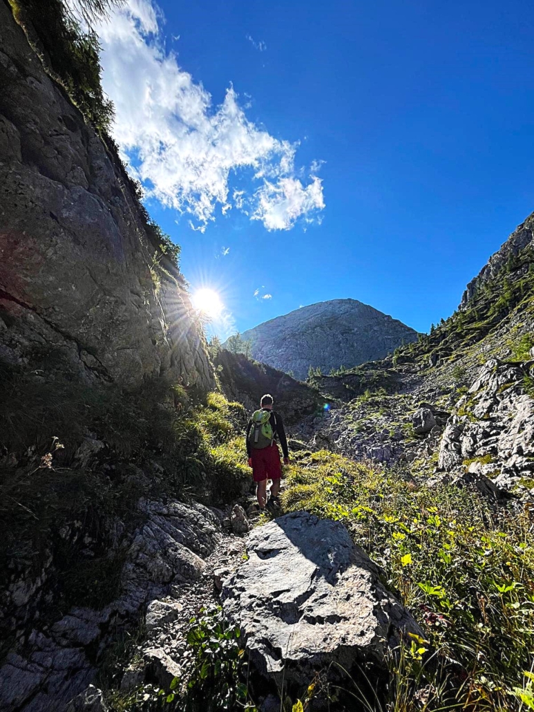 Vom Parkplatz Hinterbrand starten wir und folgen dem Wegweiser Jenner-Mittelstation. Dann geht´s weiter im leichten Auf und ab zur Priesbergalm, nur oberhalb Königsbachalm ist der Weg sehr steil. Auf halben Weg zur Priesbergalm kommt man an der Enzianbrennhütte vorbei. Erreicht man die Alm, folgt man einen Wiesenweg zum Stiergraben, der dann hinauf führt zum auf 1890 m gelegenen Seeleinsee. Mit einem Umfang von etwa 250 Metern ist der See nicht besonders groß und bis Mitte Mai meist mit Eis bedeckt. Im Sommer ist das Wasser ruhig und klar, besitzt Trinkwasserqualität und lädt zu einer kurzen Pause ein. Zwischen großen Felsbrocken geht es rechts weiter hinauf zum Hochgschirr dem Sattelpunkt zum Landtal. Von hier ab hält man sich links und es geht über einen seilversicherten Steig, dem Mausloch hinauf zu einem südseitigen Grashang. Der weitere Aufstiegsweg führt in kleinen Serpentinen zum Gipfel. Oben wird man mit einer herrlichen Aussicht auf den Watzmann und das Steinerne Meer belohnt. Mit etwas Glück sieht man auch Steinböcke, die in diesem Gebiet häufig zu sehen sind. Auf dem Rückweg geht’s wieder hinab zum Hochgschirr, von dort kann man in südlicher Richtung zur Laafeldwand gehen und erreicht dann vorbei an der Regenalm die Gotzenalm. Wir wählten den gleichen Rückweg wie Anstieg um dem Bergbrenner Hubsi bei der Brennhütte noch einen Besuch abzustatten.